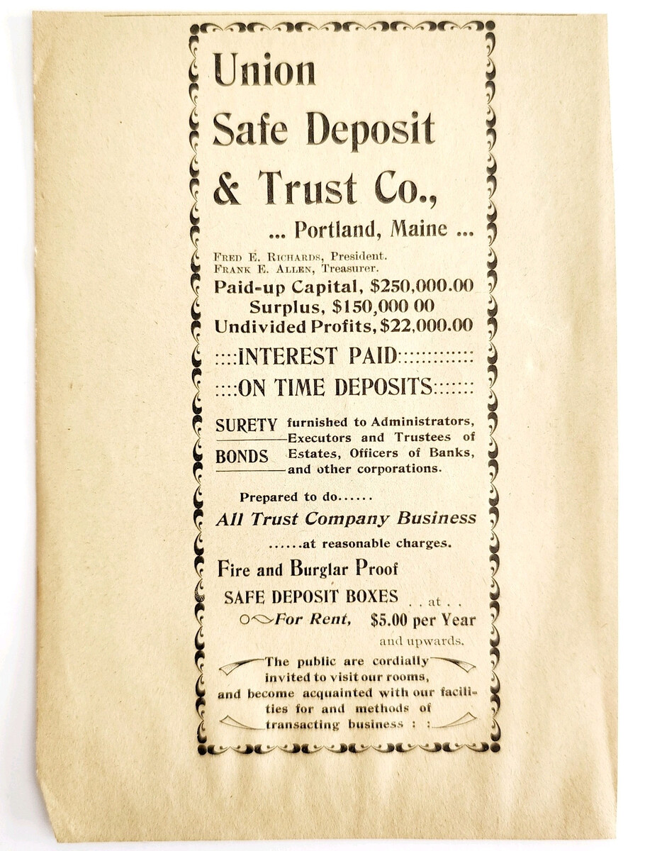 1906 Union Safe Deposit & Trust Co Advertisement Banking Portland Maine E17H