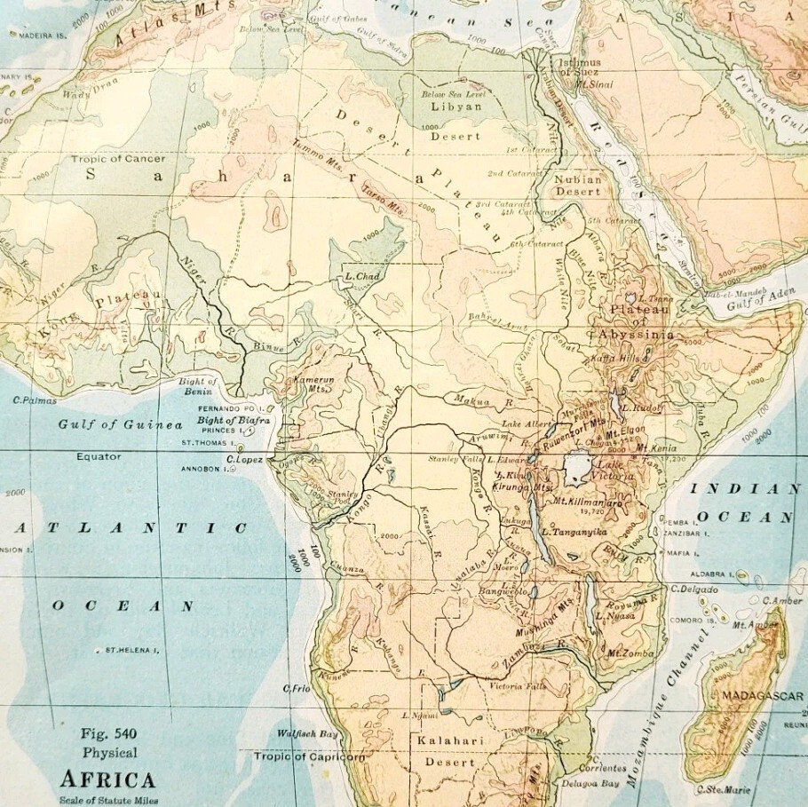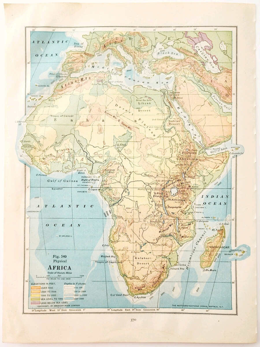 1920 Map Africa Physical Sudan Egypt and 49 similar items