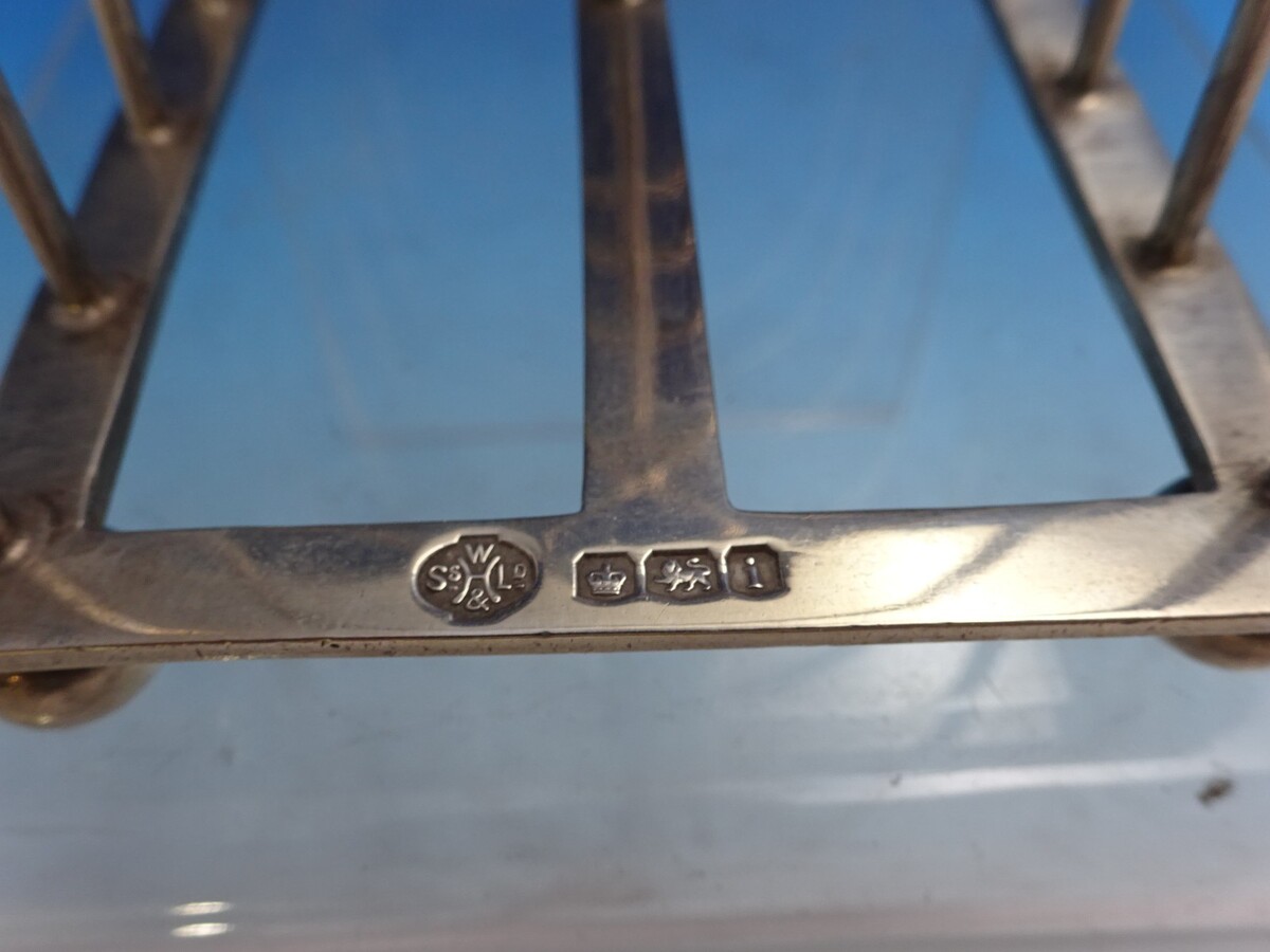 Superb William Hutton and Sons English Estate sterling silver toast rack with four ball feet made in Sheffield circa 1926. It is marked #1691.
