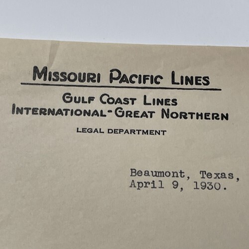 Missouri Pacific lines Letter 1930 legal department Gulf coast lines.