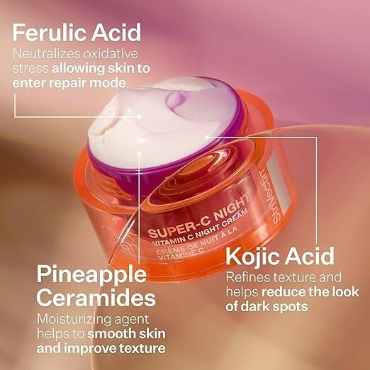 StriVectin Super-C Night Vitamin C Night Cream is a multi-action treatment that works while you sleep to visibly brighten, firm, and hydrate tired skin. Clinically proven to show brighter, more luminous skin in just 7 nights, this overnight cream targets dullness, discoloration, and dark spots while replenishing lost moisture. Infused with Vitamin C, Hyaluronic Acid, and nourishing actives, it helps even tone, improve skin texture, and reduce the appearance of fine lines. By morning, skin looks healthier, feels smoother, and appears more radiant and youthful.