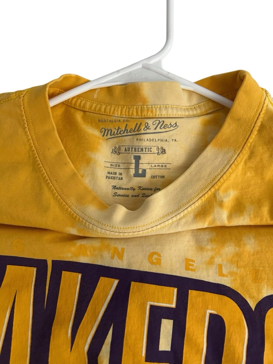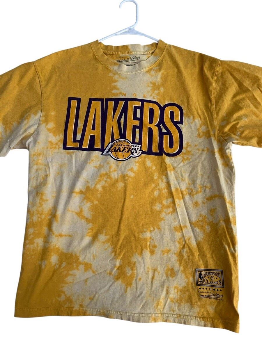Mitchell & Ness LA Lakers Nba Distressed T Shirt Gold Tie Dye Big Logo Mens L