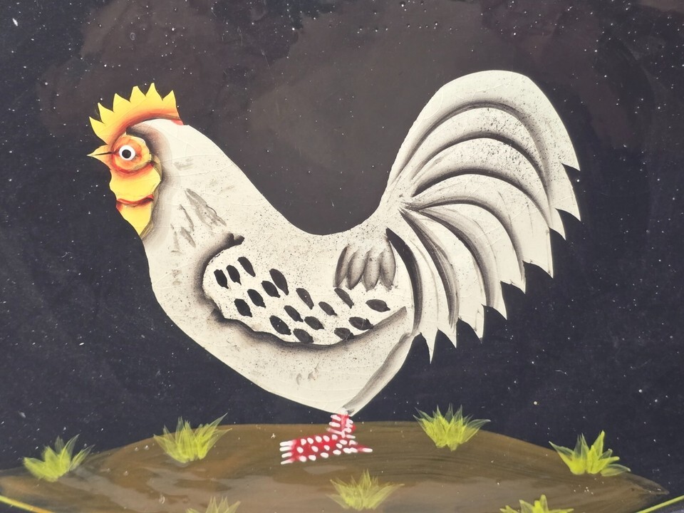 Vintage MIDNIGHT ROOSTER By Jay 18" x 11" Decorative Chicken Platter Plate Tray