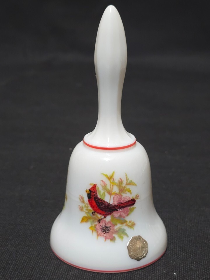 Vintage WESTMORELAND 5.25" Glass Bell Hand Painted Cardinals On Milk White