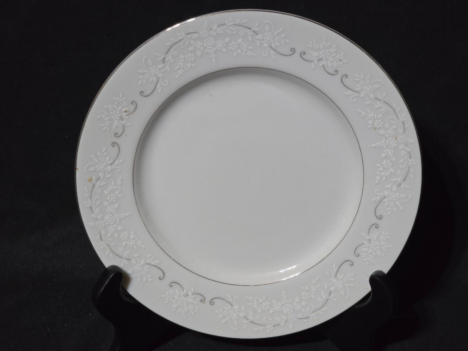 Vintage TOWNE 7.75" Salad Plate LOVELACE Gray Scrolls Platinum Trim - Set Of 8