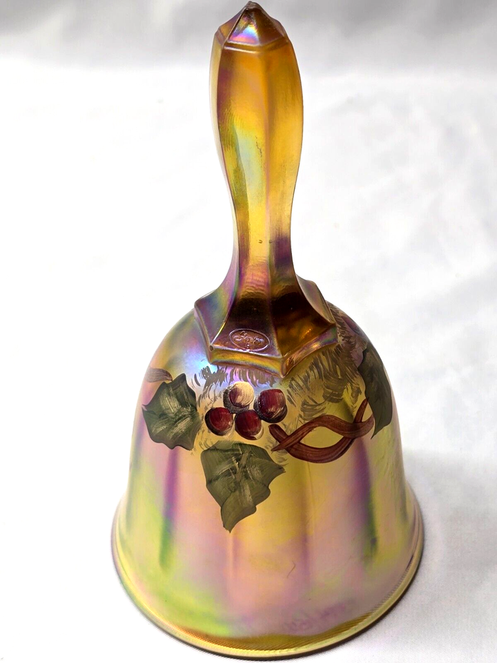 Vintage FENTON 6.25" Carnival Art Glass Bell - Hand Painted By C. Macky 374/1500