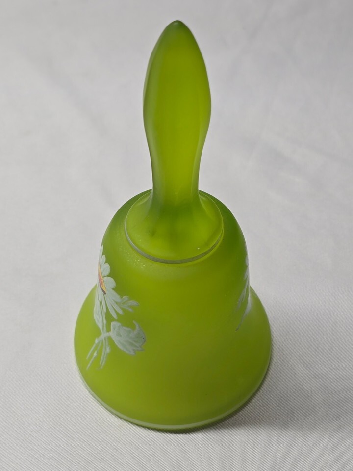 Vintage WESTMORELAND 5.25" Glass Bell Hand Painted DAISY ON GREEN MIST + Sticker
