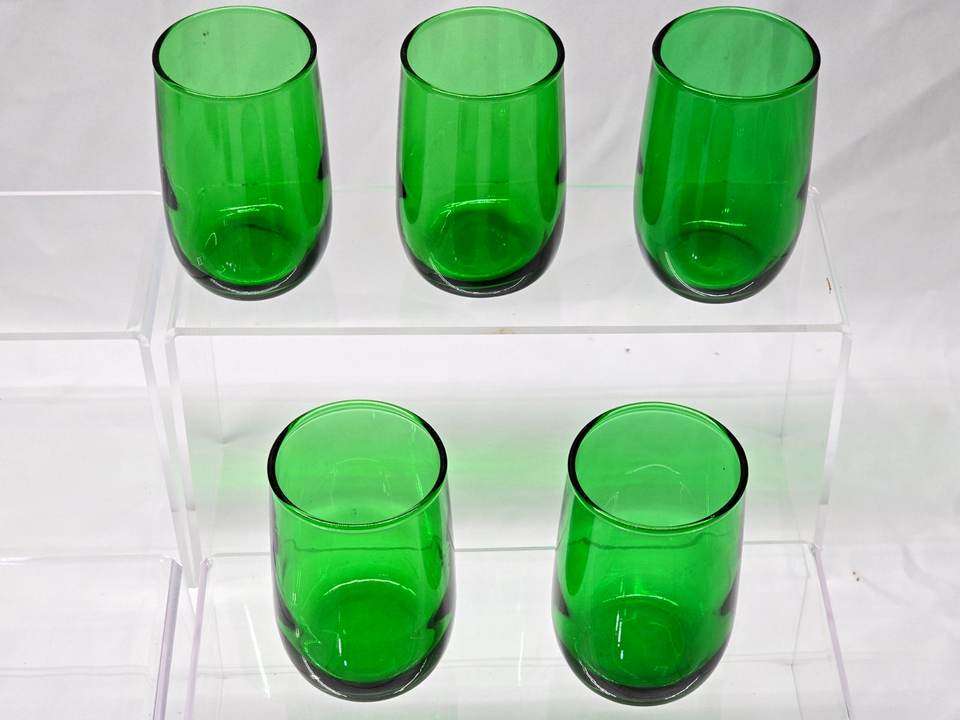 Anchor Hocking Forest Green Roly Poly Juice Glasses 3.5” Set of 5 - Vintage USA