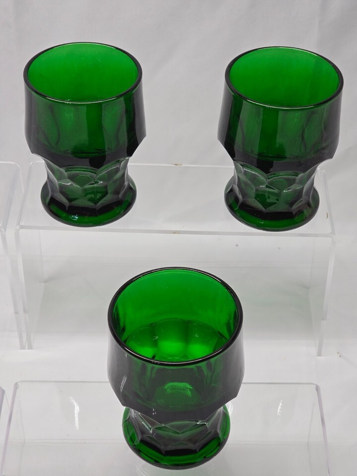 Anchor Hocking Georgian Forest Green Beverage Tumbler 9oz Set of 3 - Vintage USA