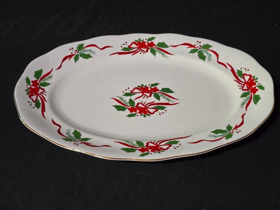 SOUTHINGTON By BAUM 13.25" Oval Serving Platter VICTORIAN HOLIDAY Poinsettia