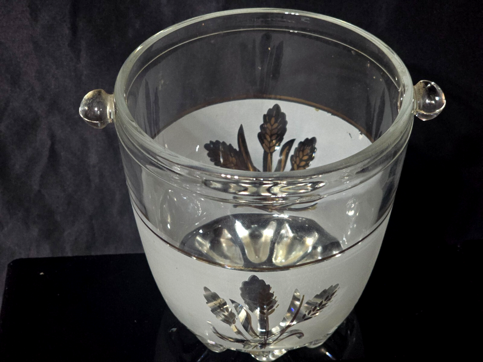 Vintage DEVALBOR Ice Bucket & 5 Old Fashioned Glasses GOLD WHEAT - MCM Italy