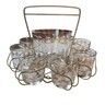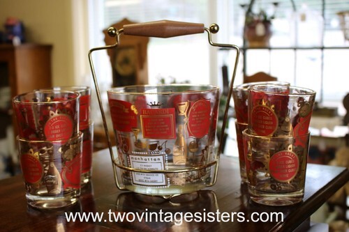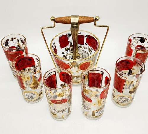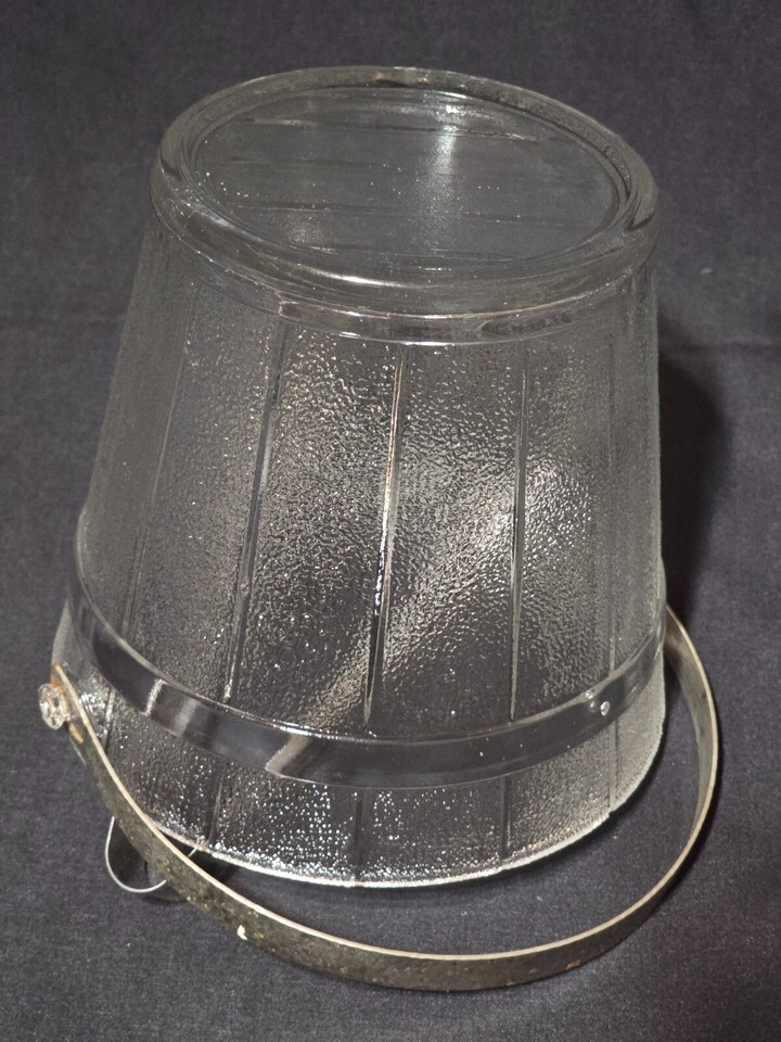 Jeannette Glass Wood Texture 6" Ice Bucket With Tongs - Barware Cocktail Set