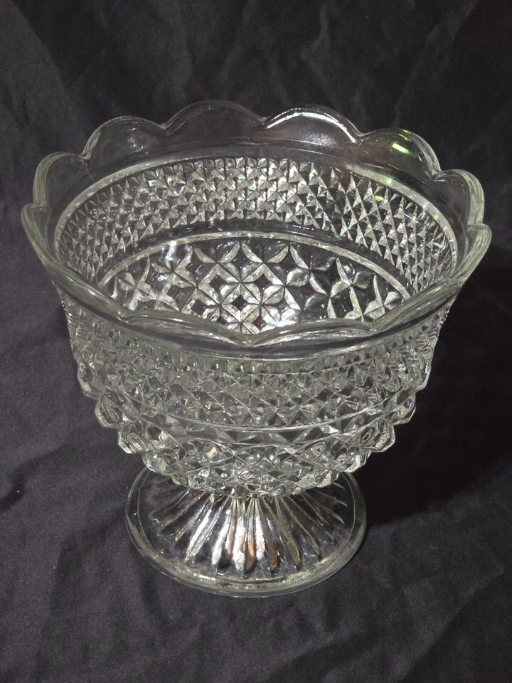 Vintage ANCHOR HOCKING 8" Pattern Glass WEXFORD Footed Centerpiece Bowl