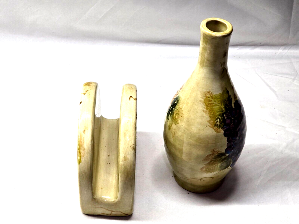 Tabletops Unlimited Cabernet Series Hand Painted Ceramic Napkin Holder & Bottle