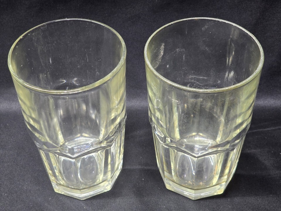 Pair Of 2 Crisa Boston Clear Cooler Tumbler Glasses 5.625" Paneled 12 Ounce