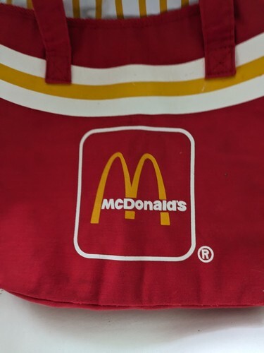 Ce sac a lunch vintage McDonald's French Fry Canvas Tote Lunch Bag Club II Group II est un incontournable pour tout collectionneur de souvenirs McDonald's. Le sac presente une couleur rouge vif et est fabrique dans un materiau en toile durable, garantissant qu'il durera des annees. Le sac est orne du logo emblematique McDonald's et est parfait pour transporter votre dejeuner au travail ou a l'ecole. Le sac est ideal pour les fans de restaurants et de restauration rapide et constituerait un excellent ajout a toute collection d'objets publicitaires ou de collection. Cet article est une trouvaille rare et sera certainement un sujet de conversation. Ne manquez pas l'opportunite de posseder un morceau de l'histoire de McDonald's.