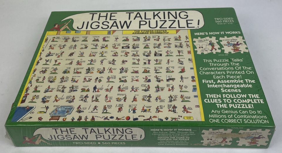 NOS Talking Jigsaw Puzzle The Fitness Center 560 Pieces Two Sided 1991 Buffalo PUZZLES - SEALED