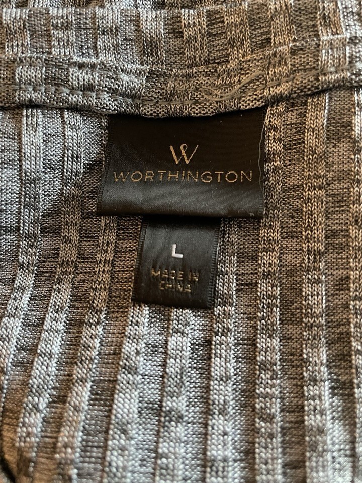 The Worthington Short Sleeve Top in size Large is a stylish and versatile blouse designed for women. Made by the trusted brand Worthington, this top features a regular fit with short sleeves, making it perfect for a variety of outfits. The silver color adds a touch of sophistication, making it a great option for both casual and formal occasions. Add this top to your wardrobe for a chic and comfortable addition to your closet.