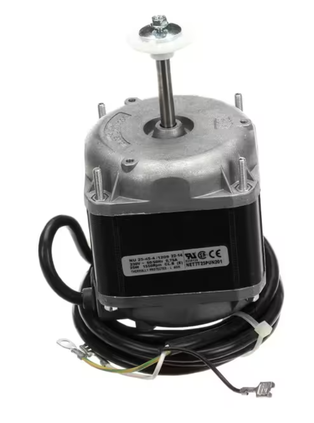 The Electrolux Professional NU25-45-4/1209 (NET7T25PUN201) Motor Ventilator is a high-efficiency condenser fan motor designed for optimal airflow and cooling performance in Electrolux Professional refrigeration and condenser units. Operating at 230 volts, 25 watts, 50/60Hz, this ventilator motor delivers consistent performance and energy efficiency for commercial-grade reliability.
