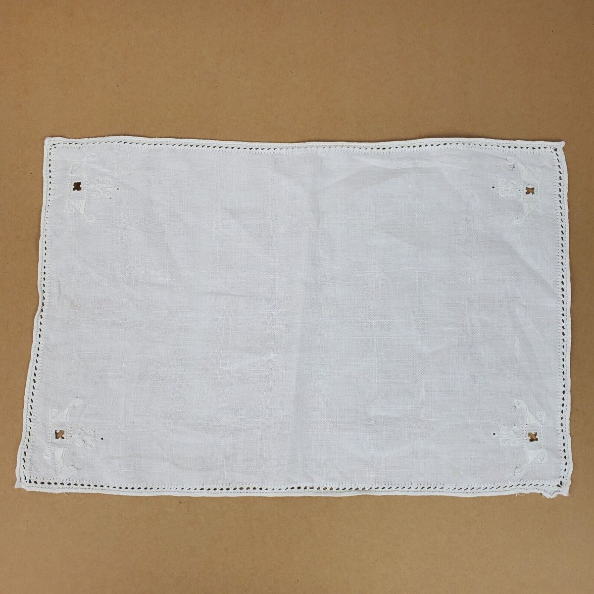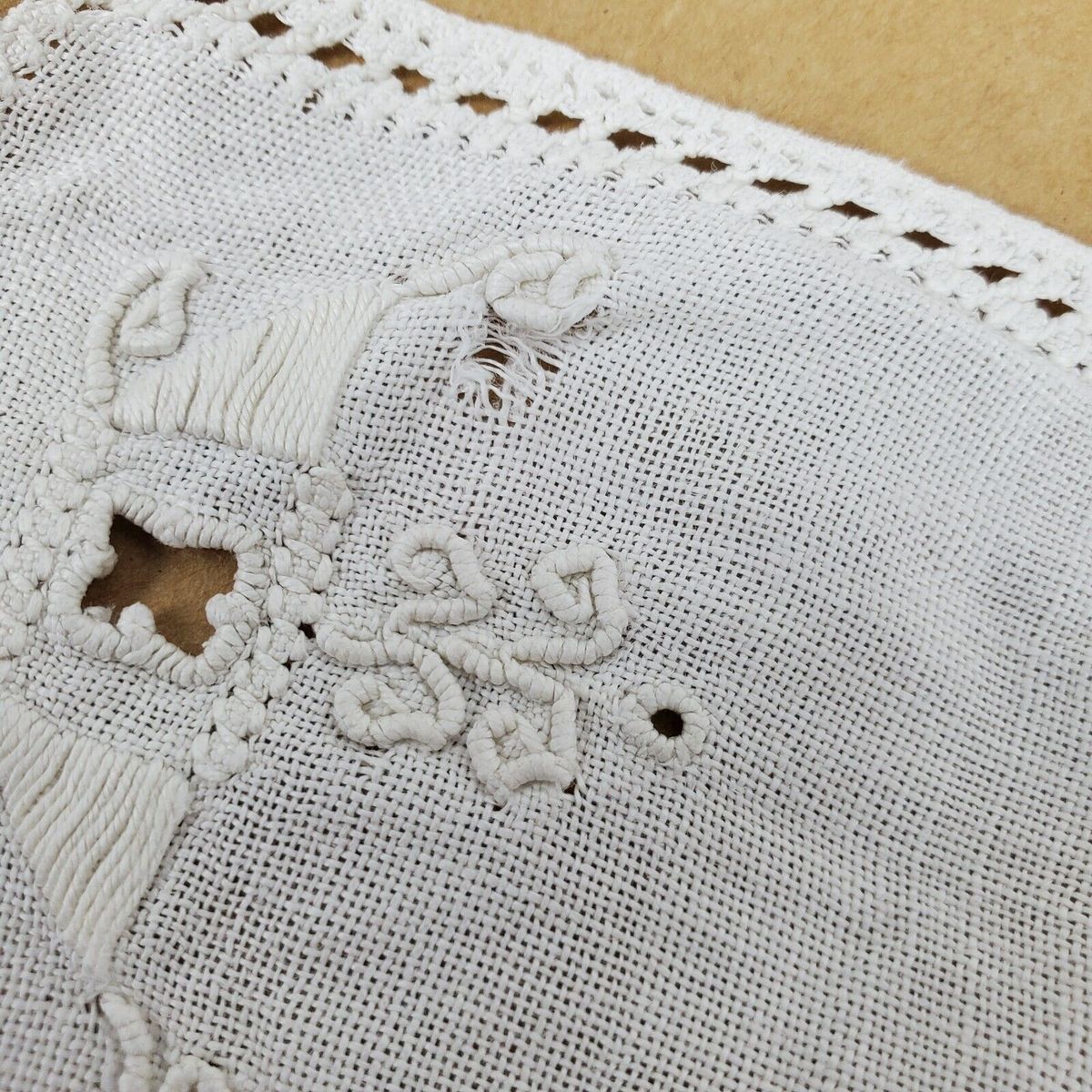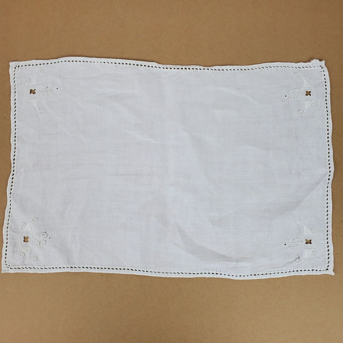 Vintage Crochet Dresser Doily Approx 17x11 Inch w/ Cutouts Ivory