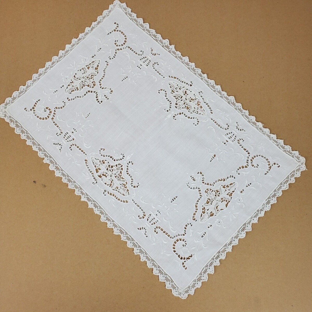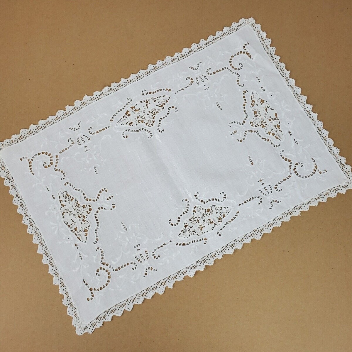 Vintage Crochet Embroidery w/ Cutouts Dresser Doily Approx 17x11 Inch Ivory (51)