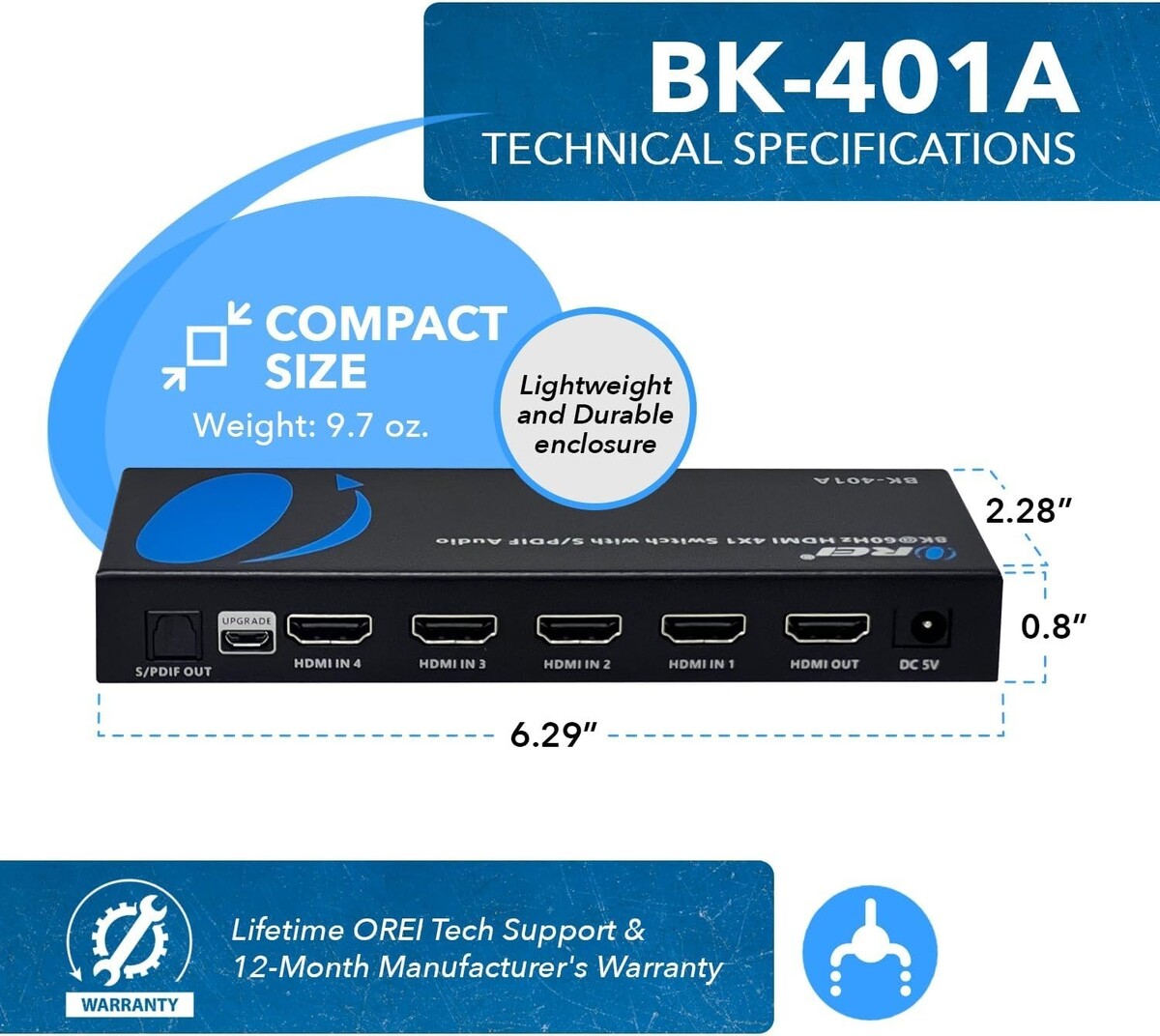 OREI 8K 4x1 HDMI Switcher With ARC (BK-401A)