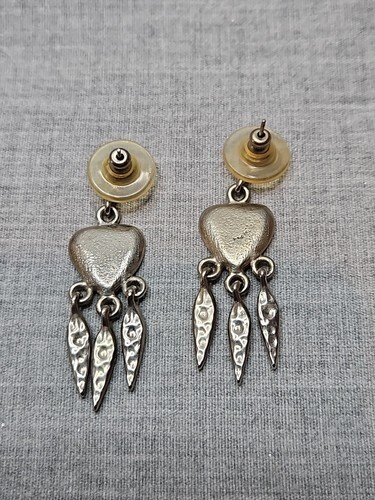 Silver Tone Blue Swirl Heart Multicolor Dangle Earrings, 1.25'' Length Vintage