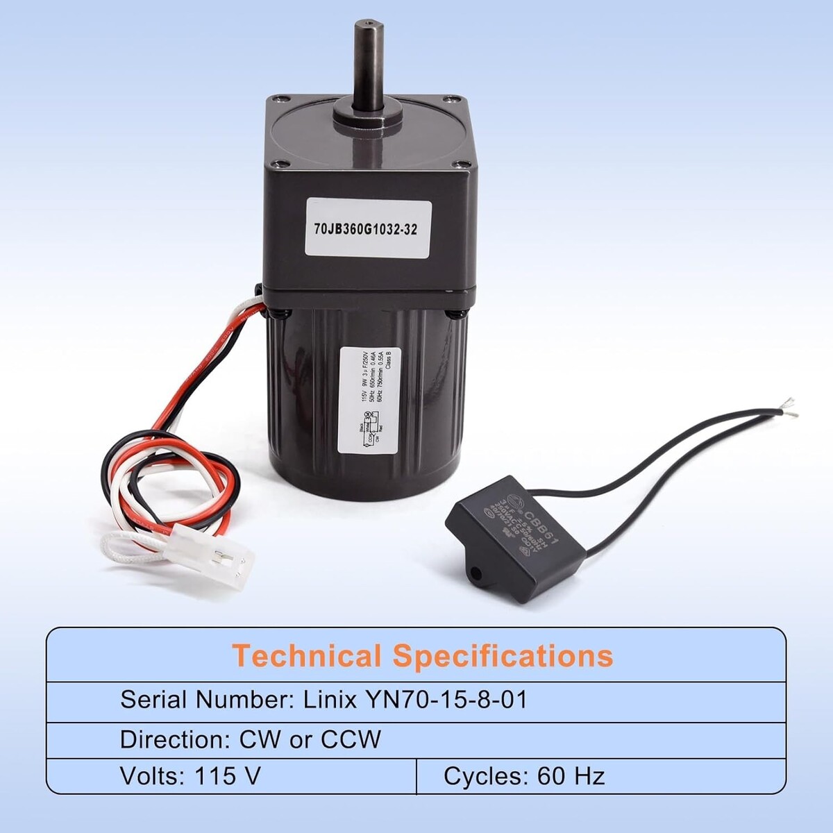 Auger Motor Compatible for ComfortBilt HP22, HP22I, HP22N, HP21, HP50, HP50GC, HP61 Pellet Stove, Linix YN70-15-8-01 Auger Motor