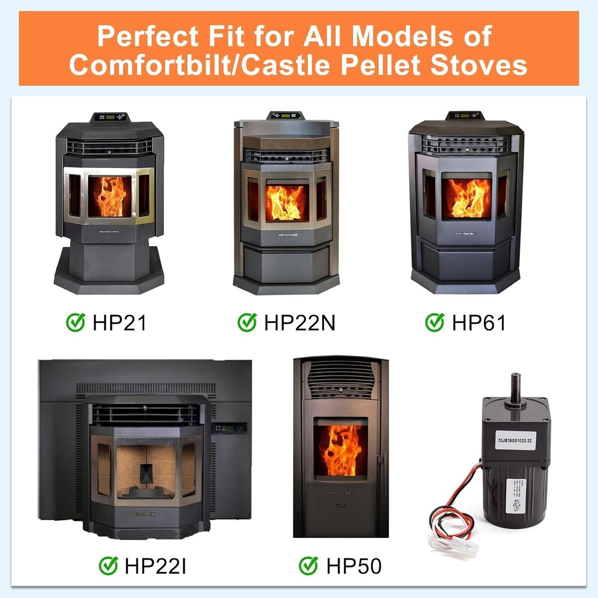 ?Compatibility?? Replacement Auger Motor Compatible for ComfortBilt HP22, HP22I, HP22N, HP21, HP50, HP50GC, HP61 Pellet Stove.