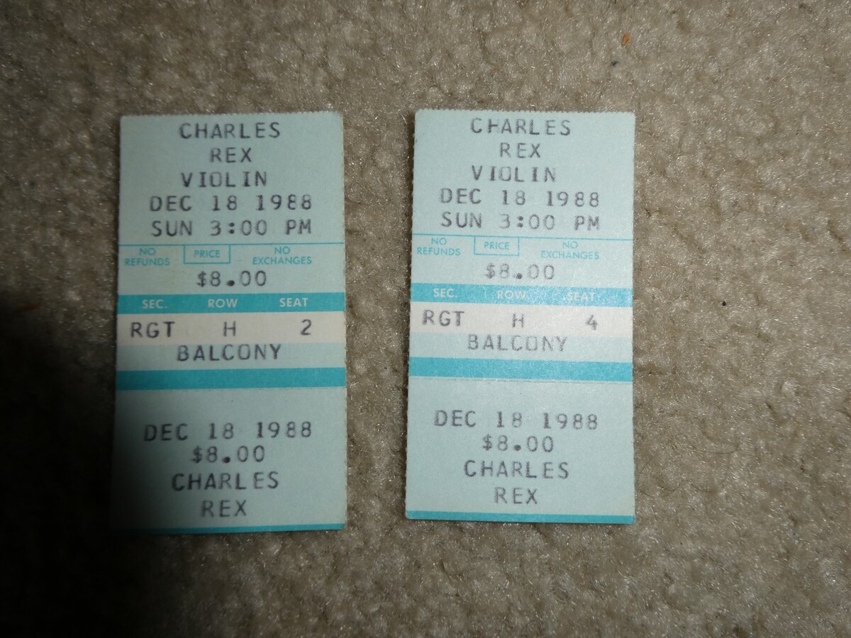 Lot of 2 December 18 1988 Charles Rex Violin Concert Ticket Stubs
