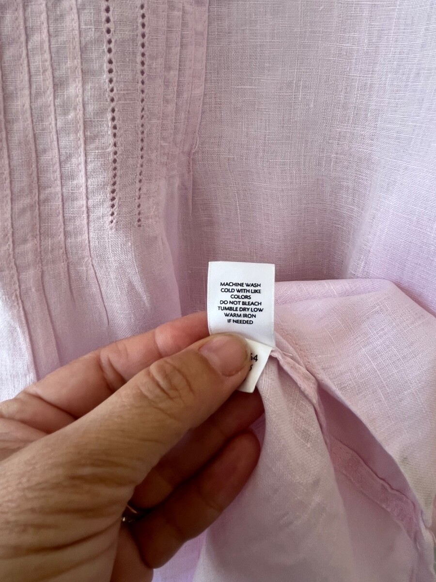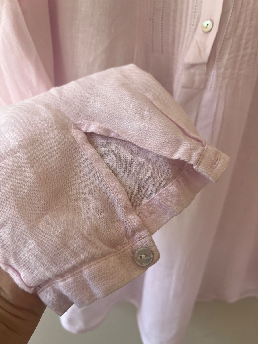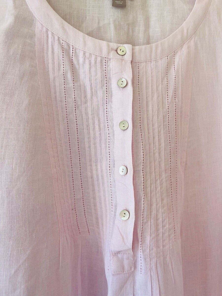 J.Jill Sz XL Love Linen Half Button Pleated Baby Pink Top Crew Neck Tunic Blouse