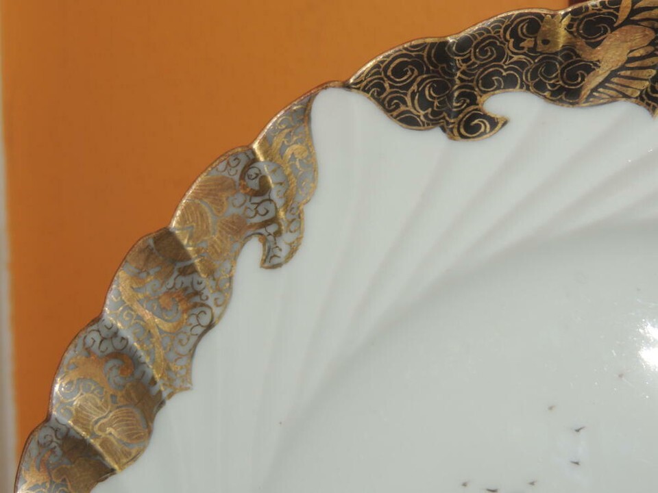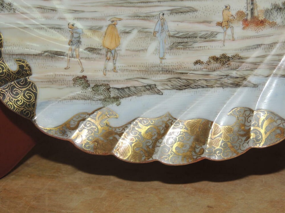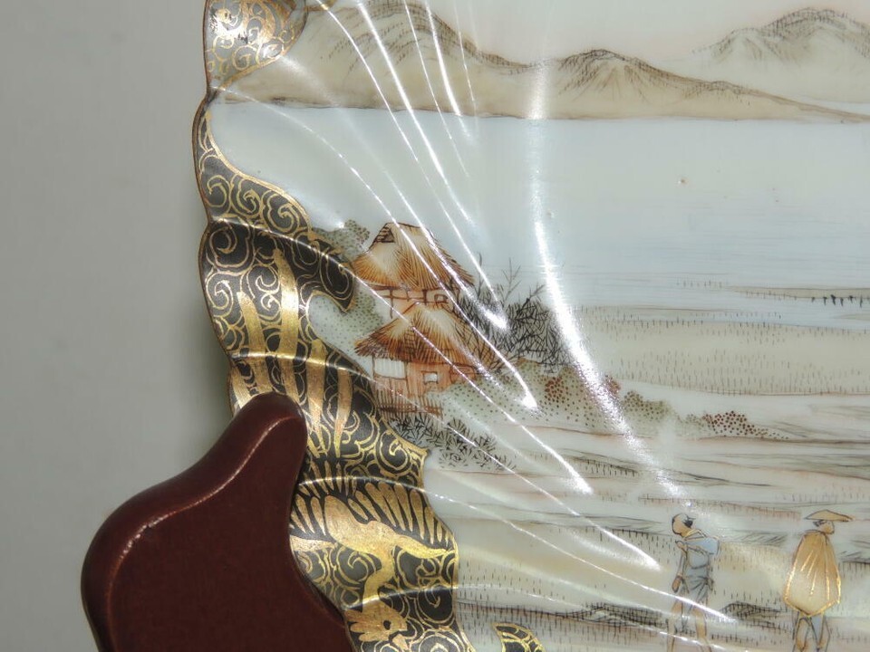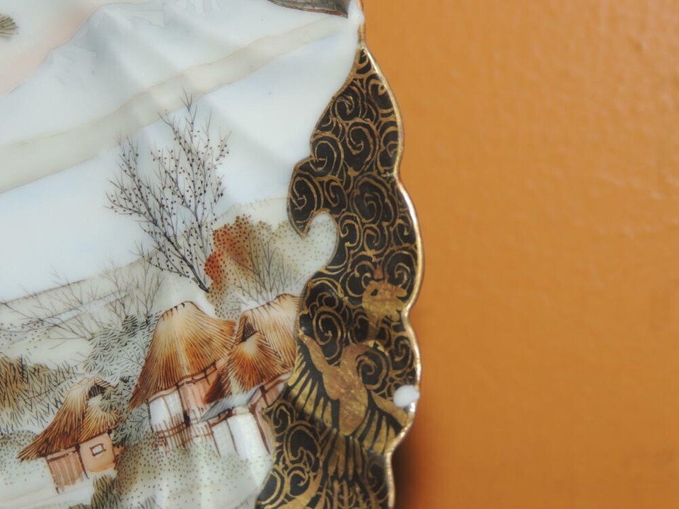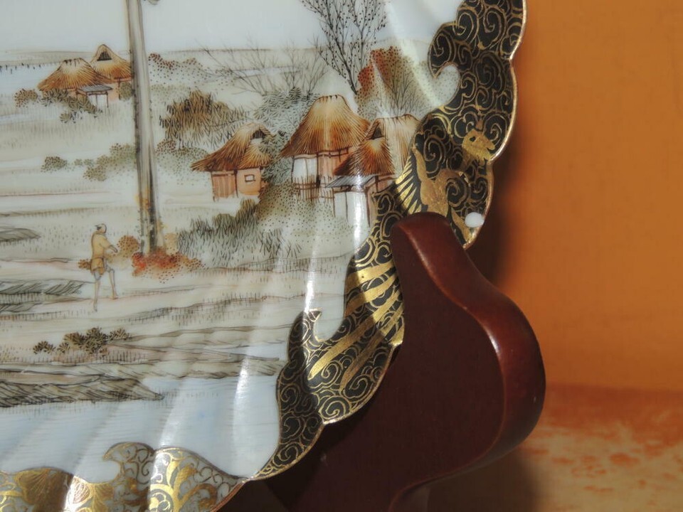 Hand painted 7.5" Plate China gold black fishing village poss Kutani Antique