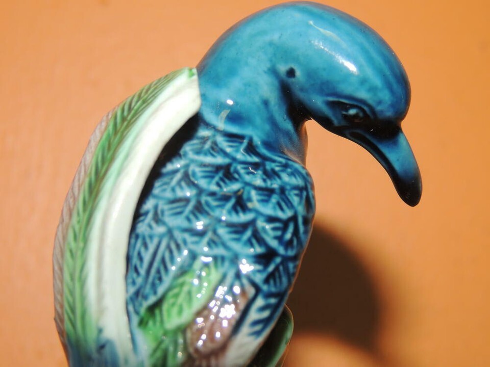 Chinese Mud Bird 4.25" mark China Mudman Antique c1910 detailed blue sibia