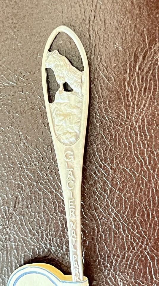 STERLING SILVER GLACIER NATIONAL PARK SOUVENIR SPOON. PLEASE LOOK AT THE PICTURES CAREFULLY.