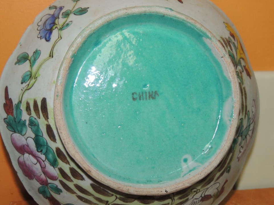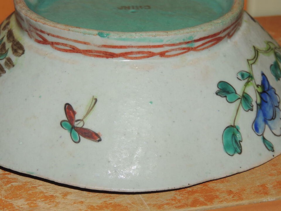 Chinese 8" Hand Painted Bowl Antique Qing 19th Lobed Footed Rooster marked CHINA