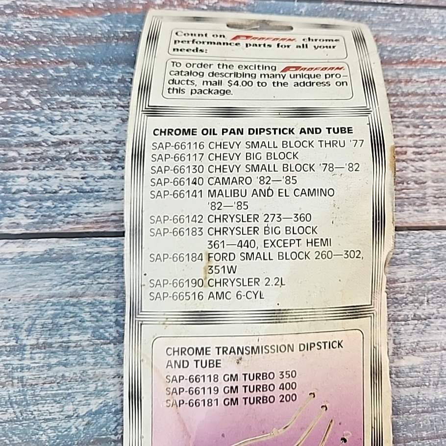 The SAP66116 is a vintage steel oil pan dipstick and tube designed to fit 1965-1977 Small Block Chevrolet engines. The chrome finish and silver color add a touch of retro style to your engine compartment. Made by Proform, this dipstick is 22 inches in length and is OE/OEM part number 3876870. It is a performance part and comes with a superseded part number of 66116. The product is highlighted with a California Prop 65 Warning for cancer and reproductive harm. Made in Taiwan, this dipstick tube is a unique and functional addition to your Chevy engine.