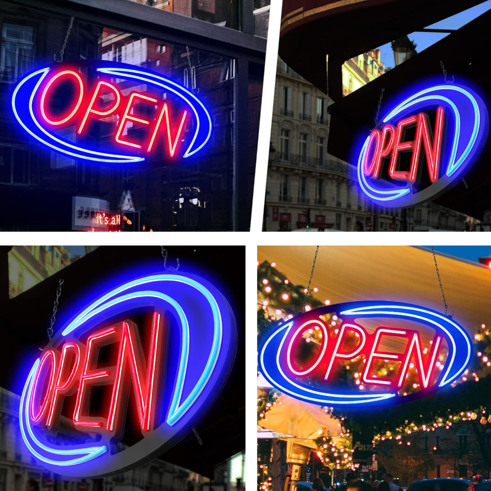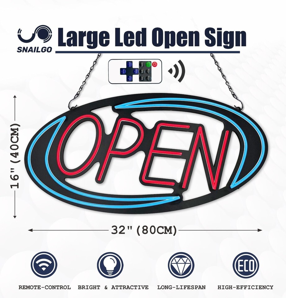 Decorate the Facade of Your Shop Attract More Customers - 32"x 16" jumbo bright LED neon open sign for business with vibrant, eye-catching colors.This product is extra BRIGHT perfect for both DAY and NIGHT