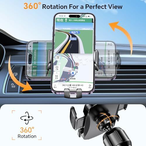 ?360 Flexible Rotation as Wish?: Best viewing angle when driving with this air vent car phone mount, it is designed with a 360 swivel ball joint, you can adjust your phone with a single hand for a horizontal, vertical, or more layout for navigating, phone talking, music listening, etc. Optimizing the perfect angle position and offering safe driving experience.