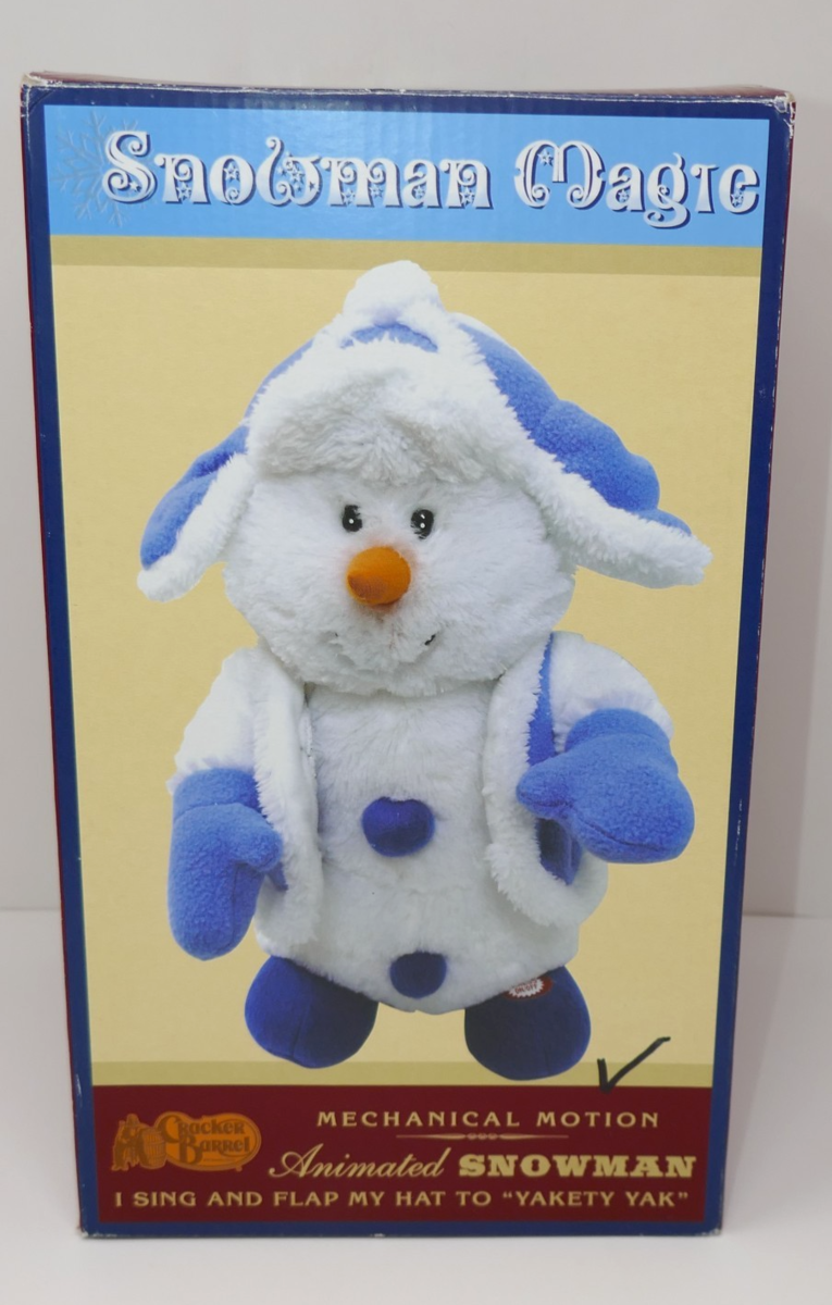 The Cracker Barrel 2009 Snowman Magic Animated Snowman is a holiday-themed toy designed for children aged 2 and above. This interactive toy features an animated snowman that sings and flaps his hat, making it engaging and entertaining for kids of various age groups. Perfect for young children and collectors alike, this Cracker Barrel snowman toy is sure to bring joy and laughter during the holiday season.