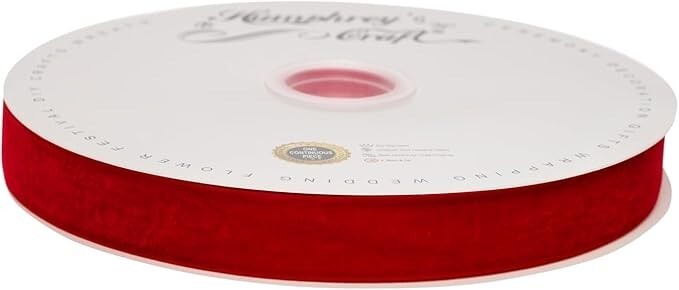 Humphrey's Craft 1-Inch-Wide Red Crushed Velvet Ribbon Spool 25 Yards (One Continuous Piece)