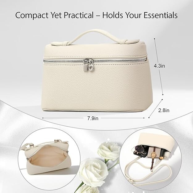 ? Small Compact -SMALL Purses for women trendy dimensions:7.9*2.8*4.3 in (L*W*H). Zippered-around compartment is perfect to fit your daily items such as cellphone, small wallet, tissue, makeups and more. Due to its soft leather and reasonable interior, you can fit most of your daily essentials into this classic bag.