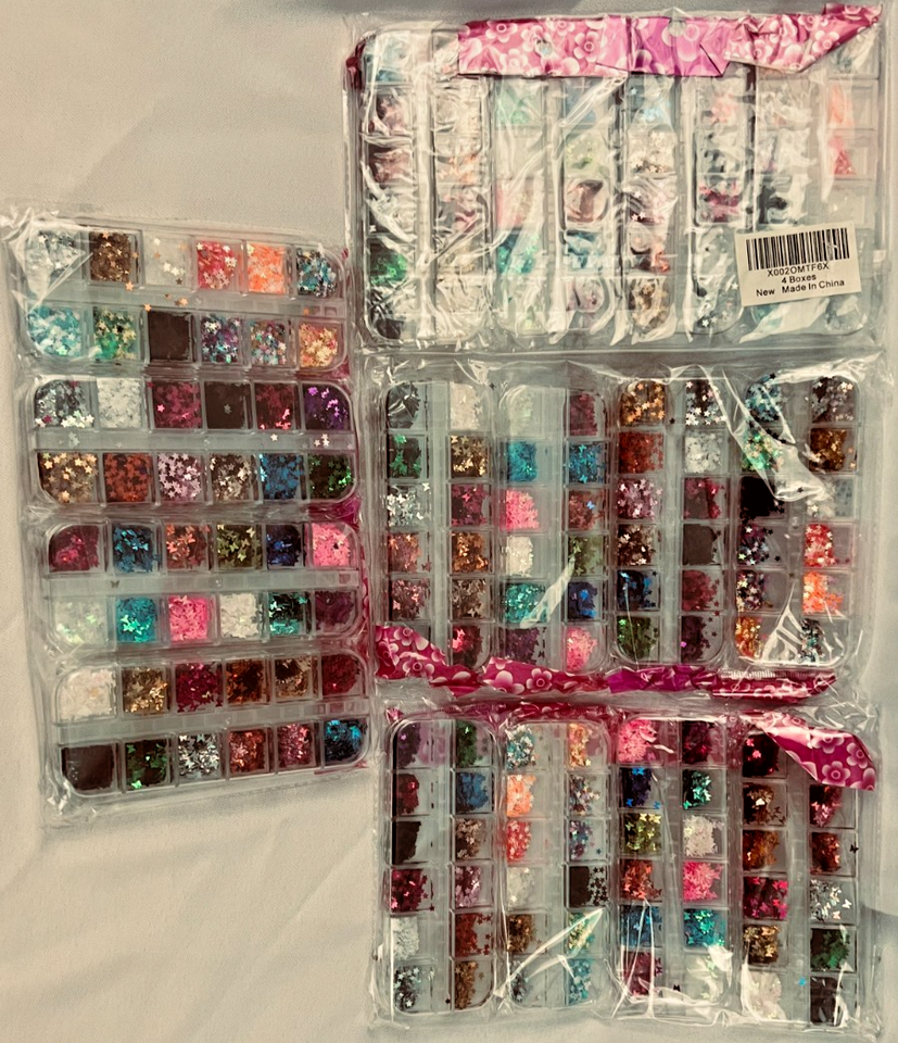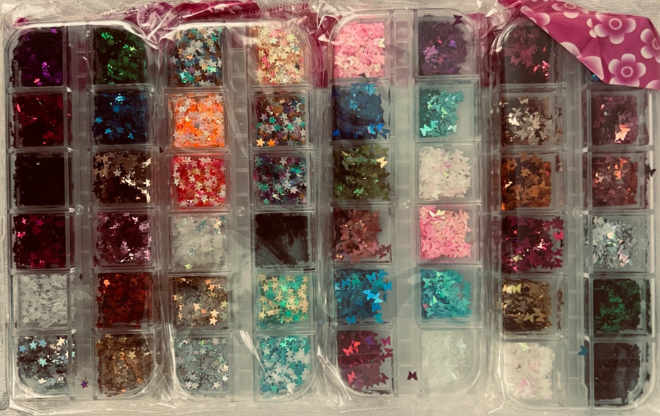 Nail Art Sequins Glitter Transparent & Color, Stars & Butterfly 4-4 Packages NEW