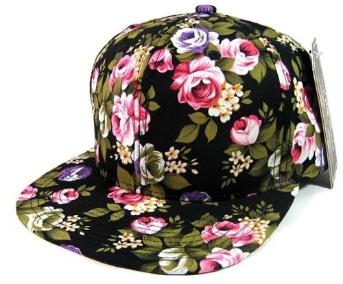 HAWAIIAN PRINT SNAPBACK HAT CAP FLAT BILL FLORAL FRESH PRINCE BLACK PINK FLOWERS