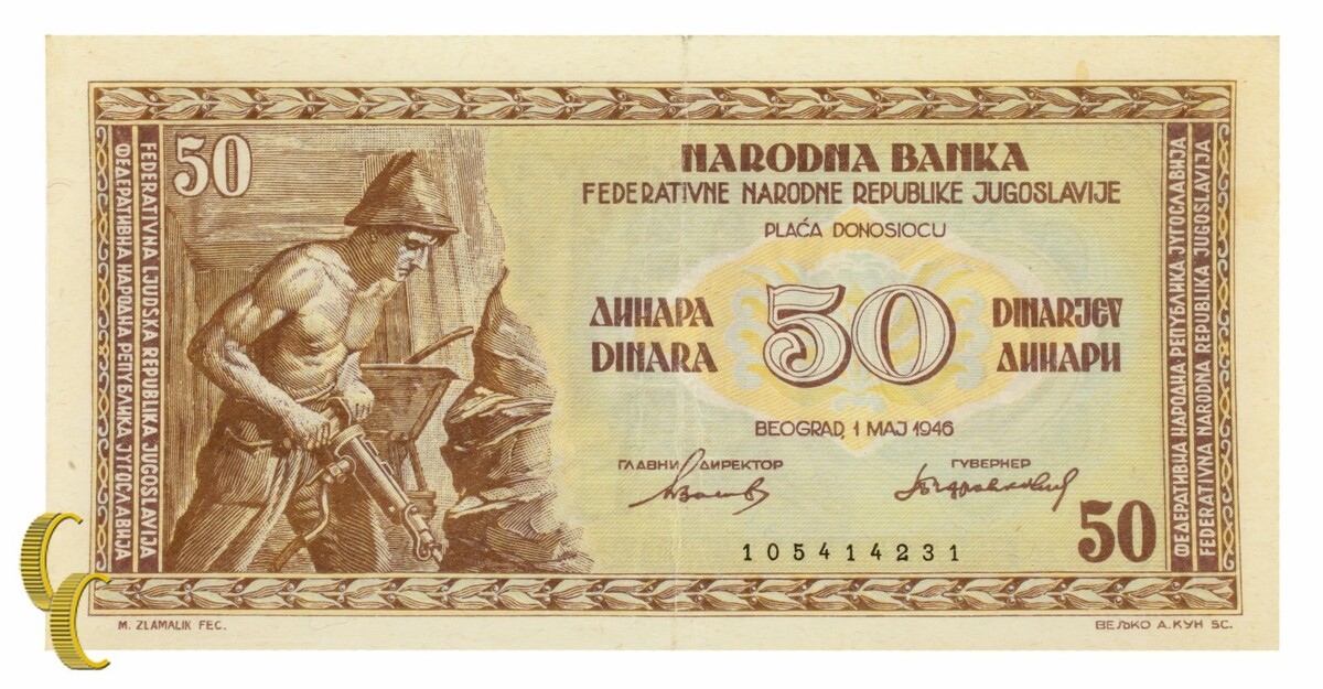 1946 Yougoslavie 50 Dinar (XF) Extra Fin État and similar items