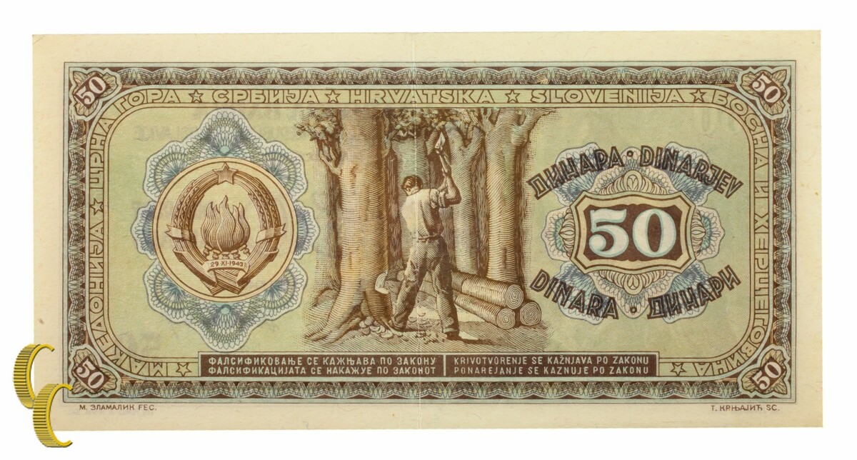 1946 Yougoslavie 50 Dinar (XF) Condition supplementaire
