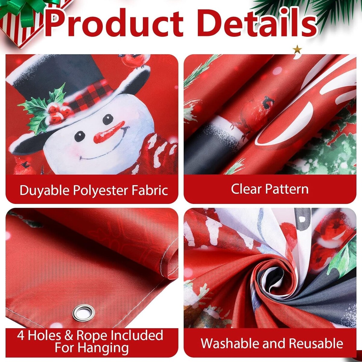 Merry Christmas backdrops are made of classy polyester fabric, lightweight, safe and tear-resistant, not easy to deform or break, also touches smoothly and comfortably due to fine workmanship, which will be reusable for a long time