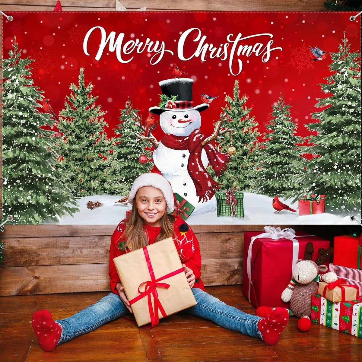 Christmas Backdrop Merry Christmas Banner Party Decoration Xmas Snowman