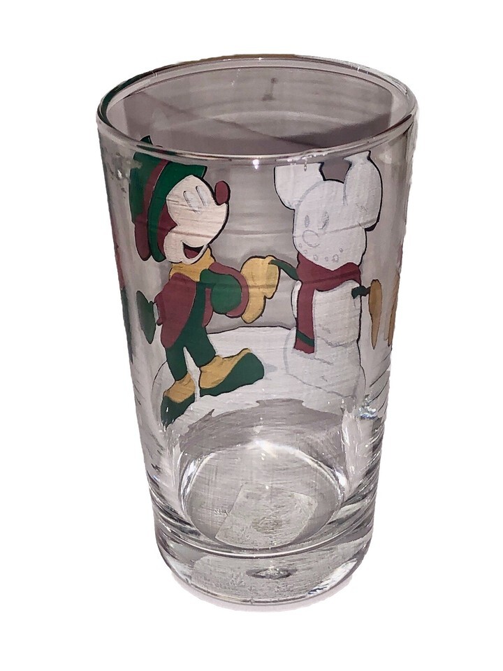 Disney Mickey Mouse Snowman Anchor Hocking Juice Glass Vintage 4.5” Tall 3.5” W