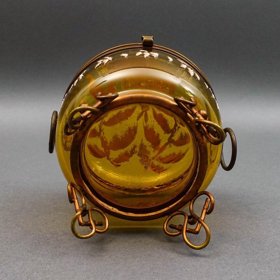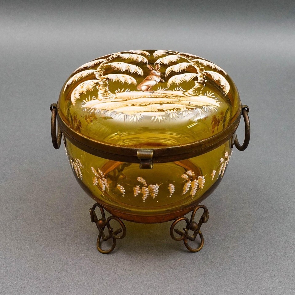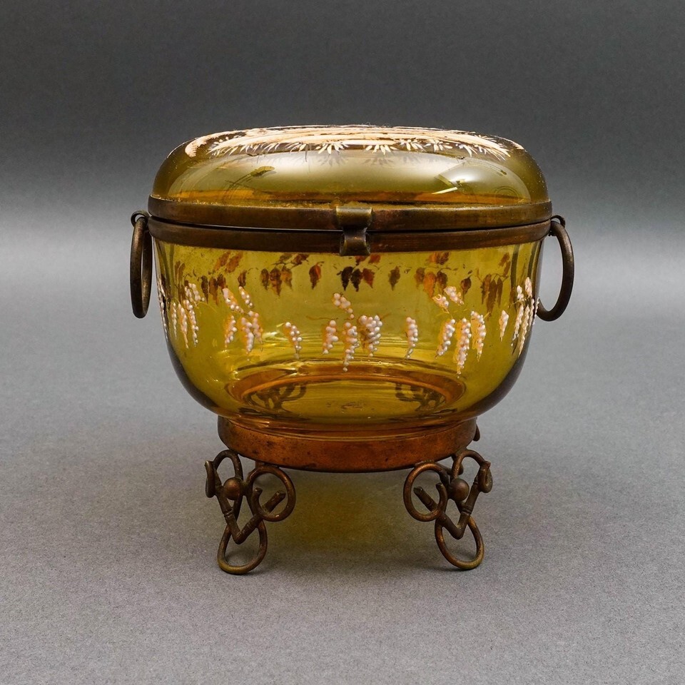 Antique Bohemian Moser Enamel Amber Art Glass Dresser Trinket Jewlery Casket