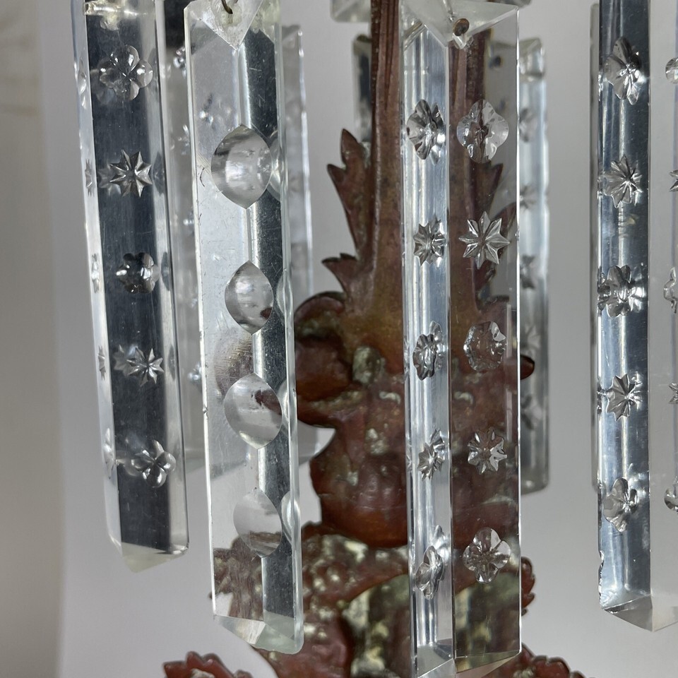 Appears to be leaning back a little bit and the drops that crystals hang from aren?t perfectly even like they may been slightly been over time.
